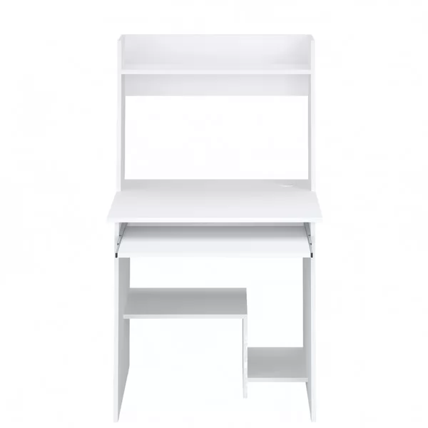 Продуманный дизайн - выдвижная полка для клавиатуры, рабочая зона, полка для книг и других нужных мелочей, полка для системного блока, отверстие для проводов в столешнице - делают стол удобным доже при его скромных размерах и цене.