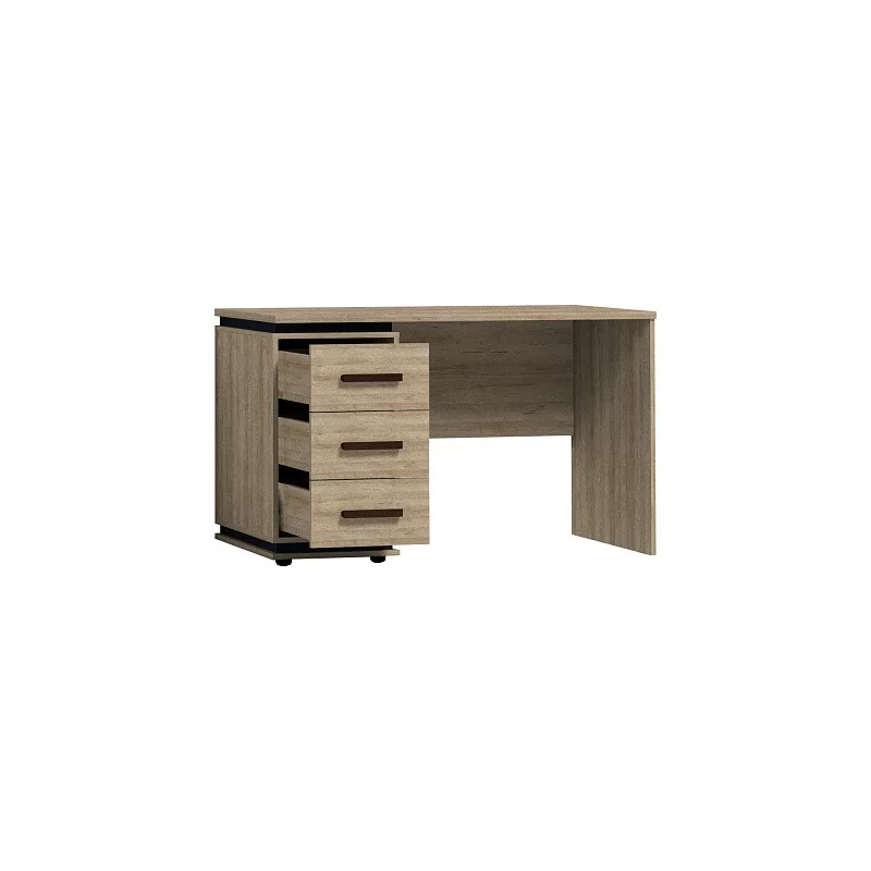 За счет просторной рабочей поверхности OSLO 84 Cтол письменный одинаково удобен как для левши, так и для правши. Благодаря возможности левосторонней и правосторонней сборки три выдвижных ящика на шариковых направляющих можно установить с любой удобной для вас стороны. Столешница 22 мм и ударопрочная кромка в 2 мм повысят срок службы стола. Под столешницей - небольшая ниша со стороны ящиков. В нишу спокойно может поместиться планшет или журнал.