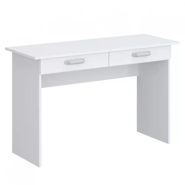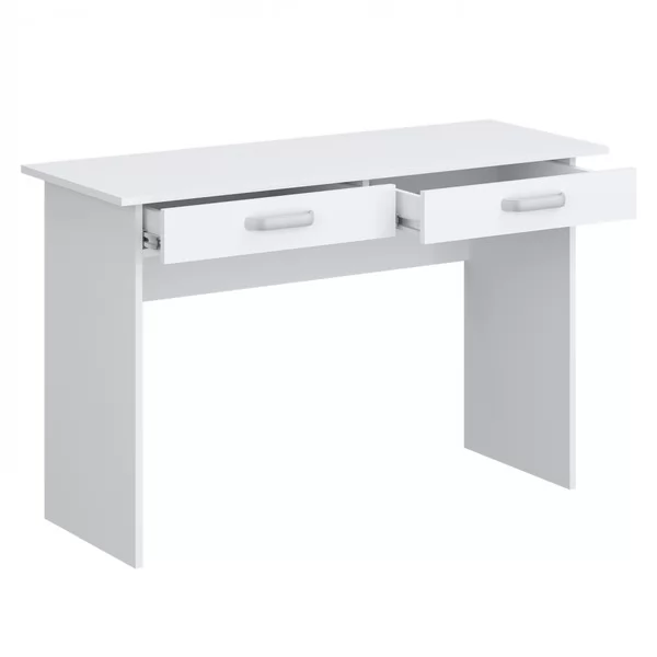 Лаконичный и удобный письменный стол станет отличным рабочим пространством - ничего лишнего. А небольшие выкатные ящики прекрасно подойдут для нужных мелочей - использован механизм шариковых направляющих полного выдвижения (надежный, позволяющий увидеть все пространство ящика целиком)