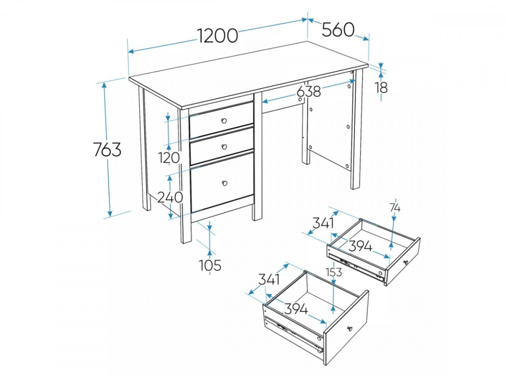 Стол письменный Сага 120х56 темно-бирюзовый в Тюмени