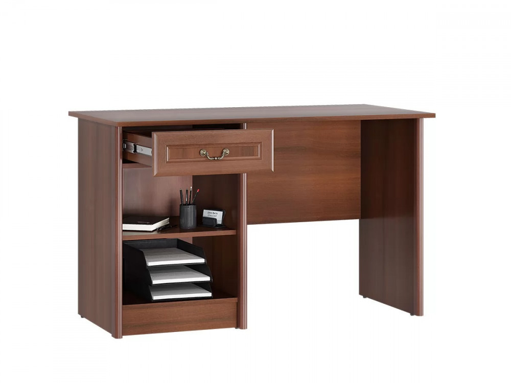 Стол письменный Янна (модуль ЯН 45) - это часть одноименной модульной программы, может использоваться как в ее составе, так и в качестве отдельного, самостоятельного предмета меблировки для обустройства кабинета, гостевой или другой комнаты. Модуль ЯН 45выполнен в классическом, лаконичном стиле, благодаря чему он органично впишется практически в любое интерьерное решение. У письменного стола ЯН 45 просторная столешница, также предусмотрена вместительная тумба с распашной дверцей и полками и выдвижной ящик, чтобы удобным образом организовать рабочее место.