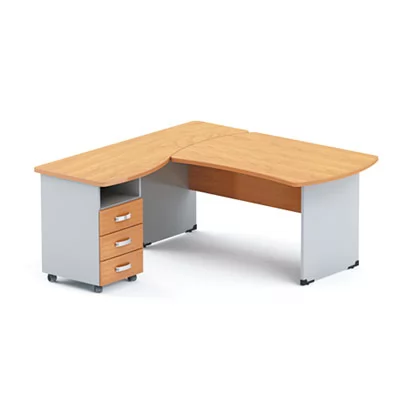 Используется ламинированная плита толщиной 28 мм и 22 мм стандарта эмиссии Е1. Торцы плиты облицованы прочной профилированной противоударной кромкой производства Германии. Цвет кромки соответствует цвету ДСП. Применяется фурнитура ведущих европейских производителей, в том числе центральные замки для тумб, роликовые направляющие выдвижных ящиков и регулируемые по высоте опоры столов и шкафов.