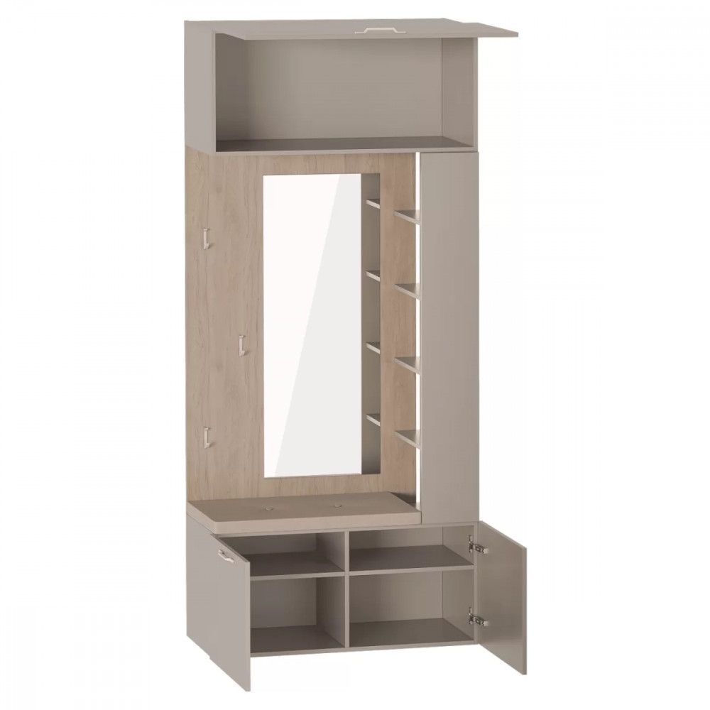 Модульная прихожая "ДЖЕРСИ", выполненная в современном стиле, придаст вашей прихожей красоту и функциональность. Модуль "Вешалка с зеркалом" выполнен из ЛДСП цвета Дуб натуральный светлый/Капучино.