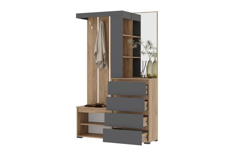 ХЕЛЕН ПР-01 Прихожая (ш1260*г353*в1980мм), Дуб Крафт Золотой/Серый Графит в Тюмени
