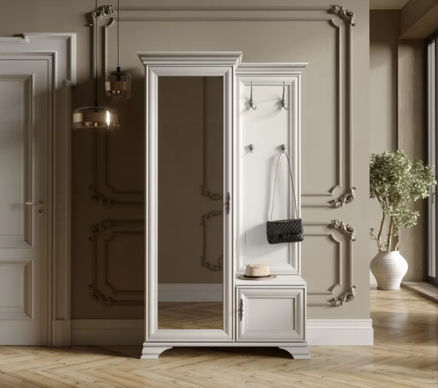 Шкаф с вешалкой Kentaki белый PPK/110L благодаря своим небольшим размерам отлично подойдет для небольших прихожих.