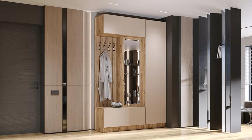 - Рейки МДФ в зоне открытой вешалки.