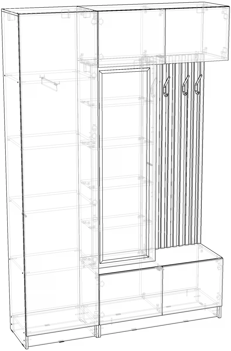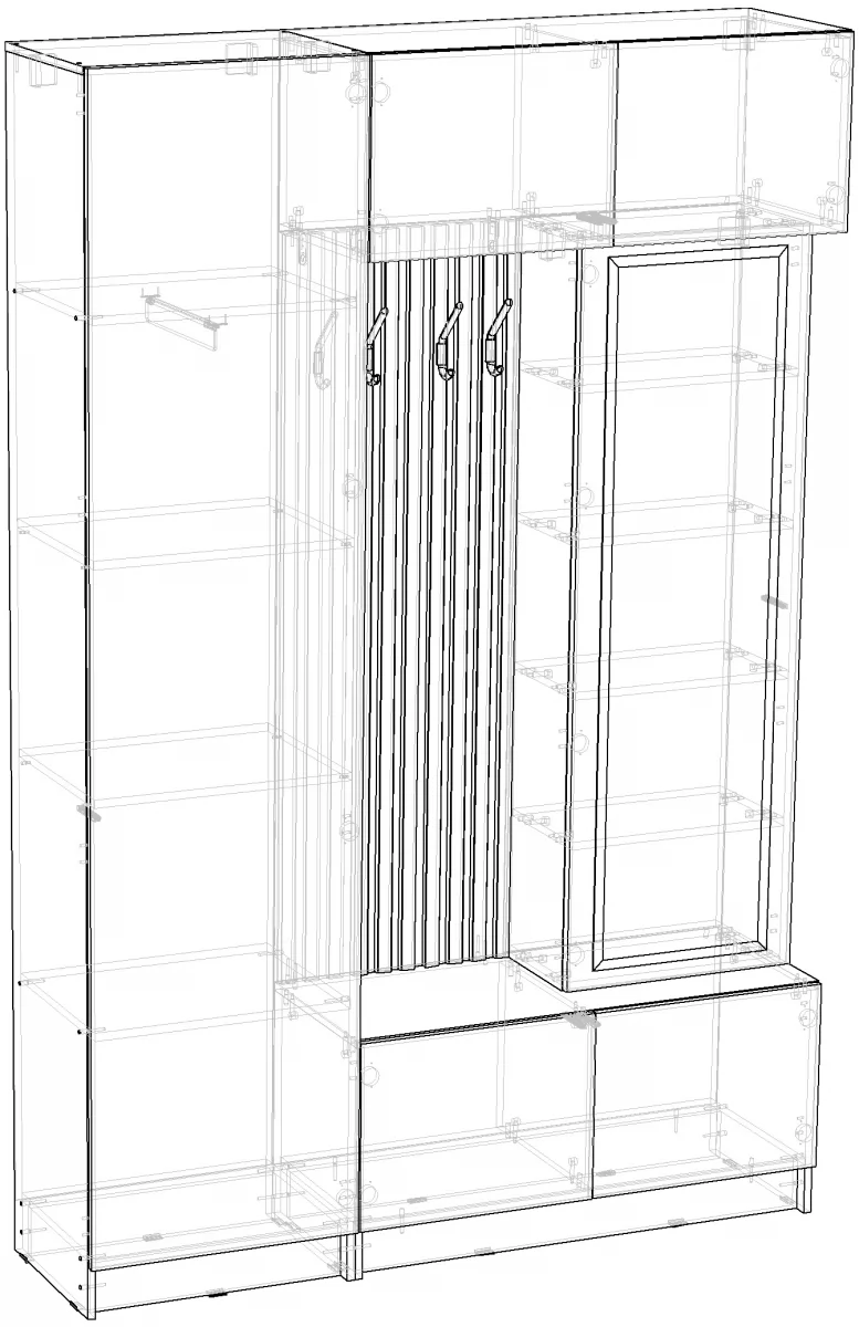 - Наполнение: полки + штанга выдвижная