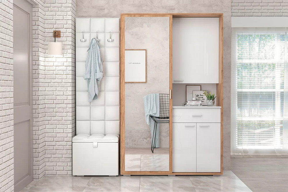 Прихожая Иннэс-4, дуб крафт золотой/белый глянец 1 шт