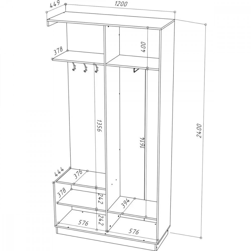 Размеры (ШхВхГ): 1200х2400х450 мм
