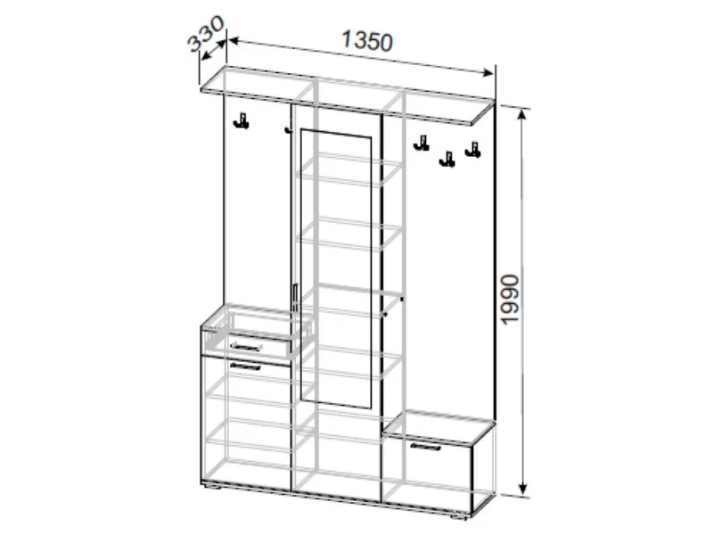 | Размер (ВхШхГ) | 1990х1350x330 мм |