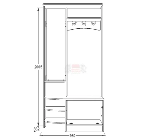 К ним относятся полки для обуви, стенка с крючками для ваших верхних нарядов, сектор для головных уборов.