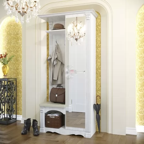 Также у прихожей есть большое зеркало, которое будет особо уместно при выборе наряда на день.