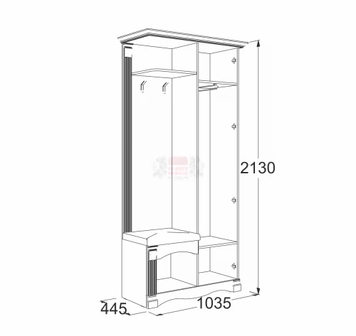 Габариты (ВхШхГ): 2130х1035х445 мм.
