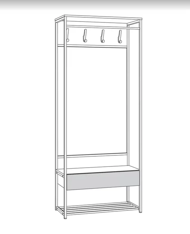 Прихожая Трувор 15.120 поможет создать приветливую и благоприятную атмосферу, которая с порога будет окутывать теплом. Четыре крючка и штанга для вешалок-плечиков созданы для верхней одежды. Для головных уборов предусмотрена небольшая антресоль, а нижняя трубчатая полка предназначена для размещения обуви. Небольшой выдвижной ящик пригодится для мелких аксессуаров и косметики по уходу за обувью.