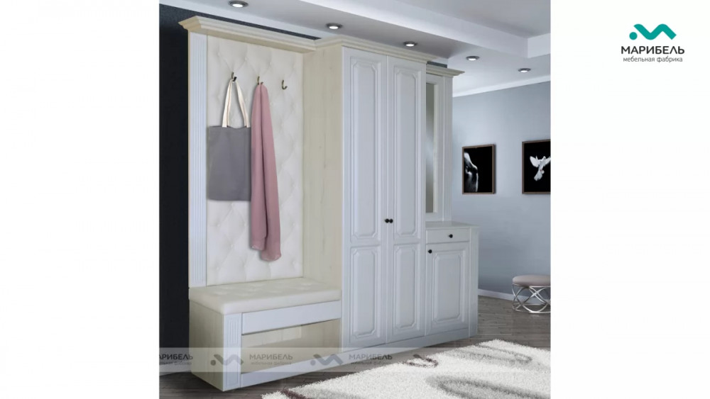 Прихожая «Визит 2» К-2/2000 (Лев/прав) Дуб Эльза/Кожа Terra 100/Дуб фактурный белый в Тюмени
