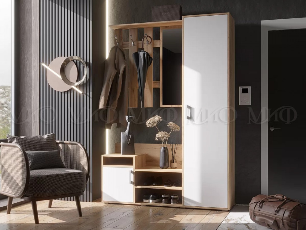 Прихожая Визит Белый глянец холодный/Дуб крафт в Тюмени
