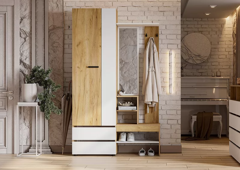 Сборка универсальная - вешалка собирается на обе стороны, крепление зеркала осуществляется на фабрике