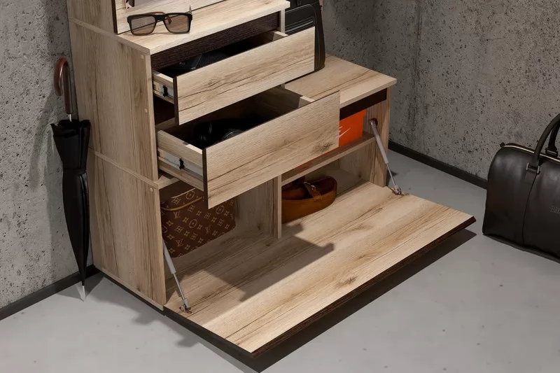 - высококлассный ЛДСП в декоре дуб делано/венге с имитацией текстуры дерева