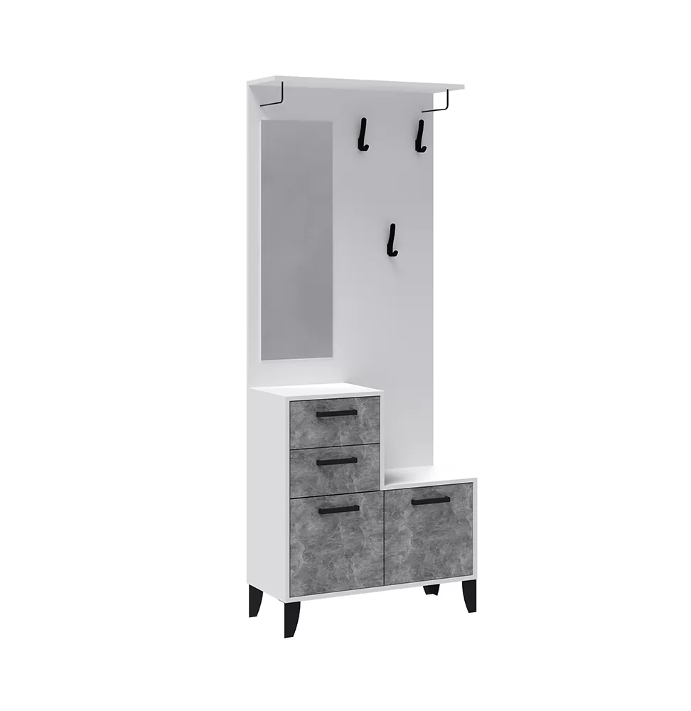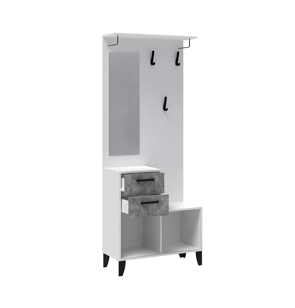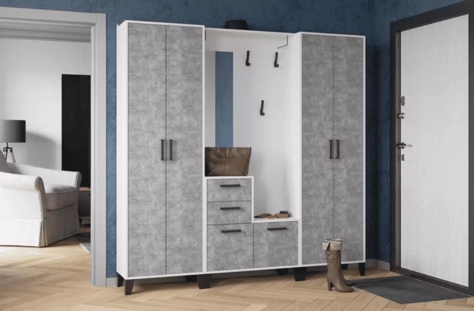Фурнитура: роликовые направляющие, опора металлическая матовая, черная. Ручки пластиковые, черные. Крючки пластиковые, черные, покрытие soft-touch. Сборка центральной секции НЕ универсальная (как на фото).