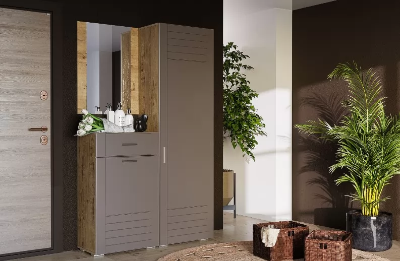 Комплектация №2 из коллекции LIVORNO не займет много места в прихожей. Отсутствие в наборе модулей открытого типа поможет защитить одежду от грязи, а обувь - от когтей домашних животных. Комплектация понравится и семьям с маленькими детьми, ведь ключи и другие мелочи можно надежно спрятать в ящик высокой тумбы.