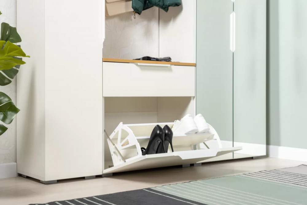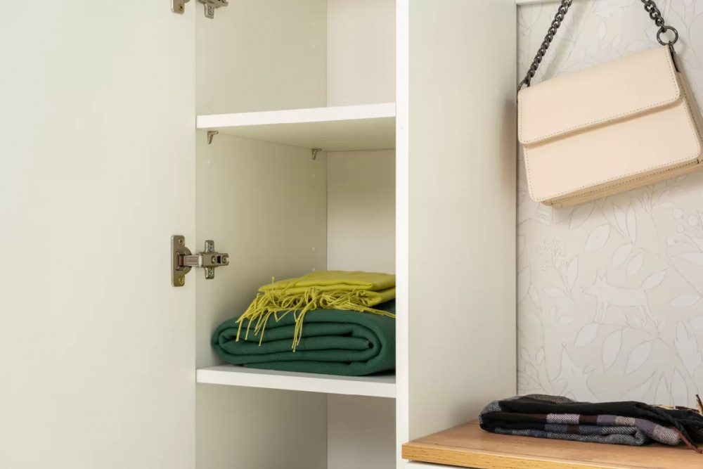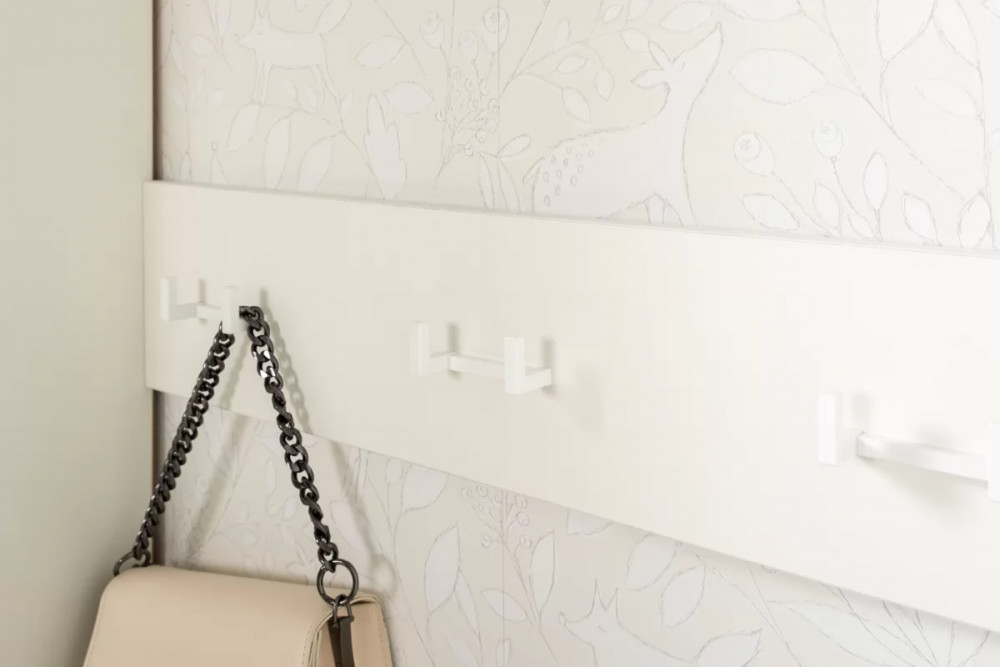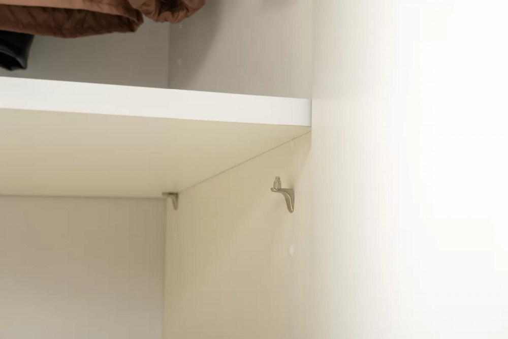 Зеркальные створки шкафа визуально расширяют пространство, а минималистичные алюминиевые ручки подчеркивают легкость и простоту линий.