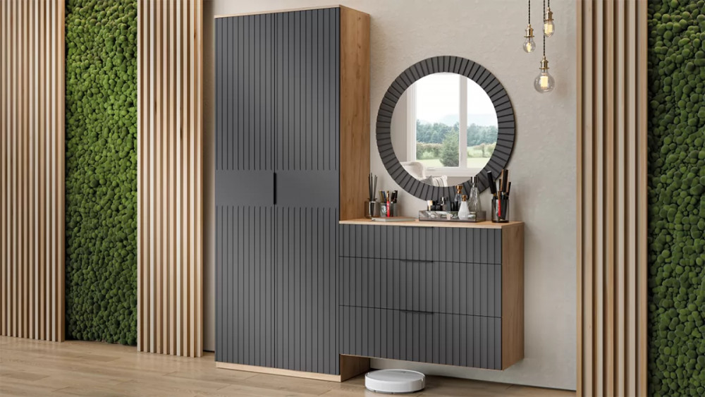 Прихожая «Хилтон» № 3 Дуб Крафт золотой, Графит матовый в Тюмени