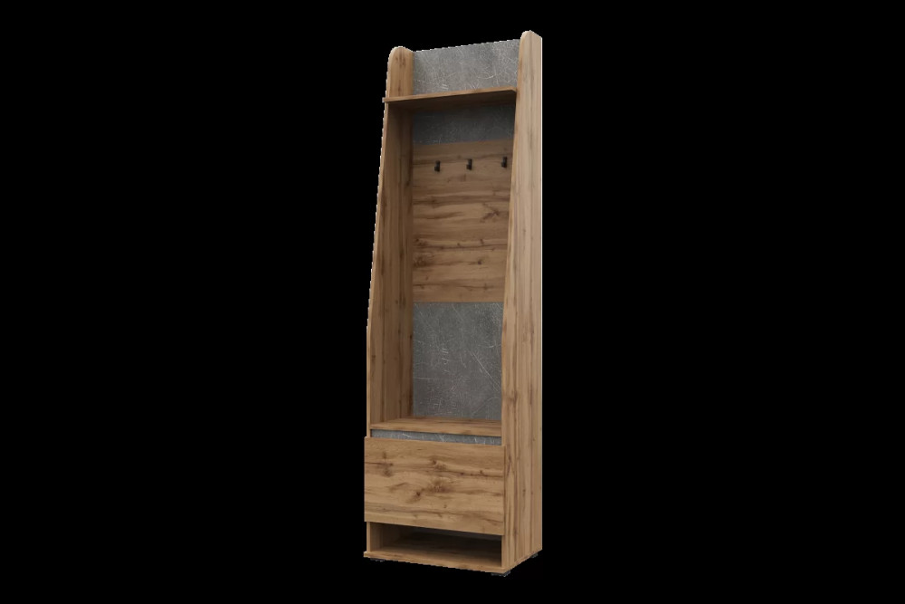 Серия мебели Mari превратит прихожую в стильное и функциональное помещение, а сочетание натурального декора дуба с оттенком серого, придаст пространству выразительность и элегантность.