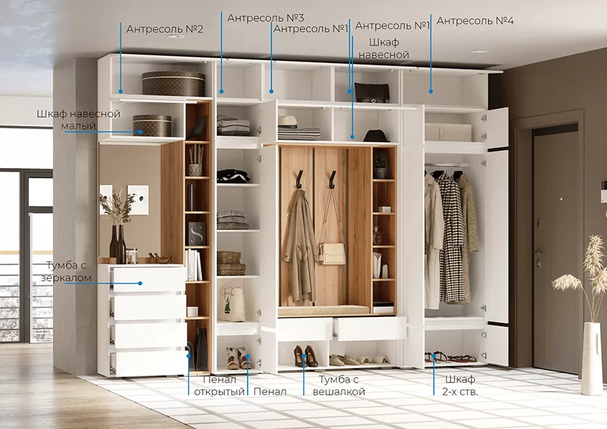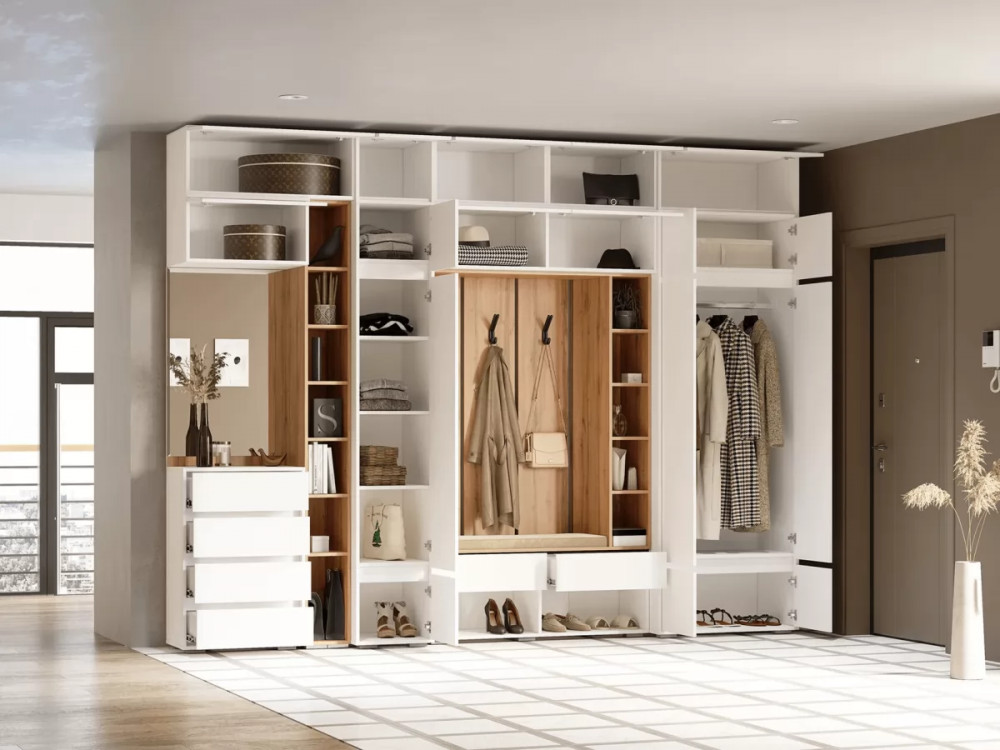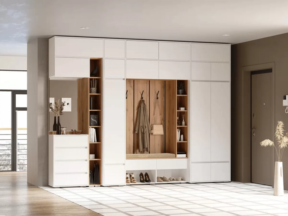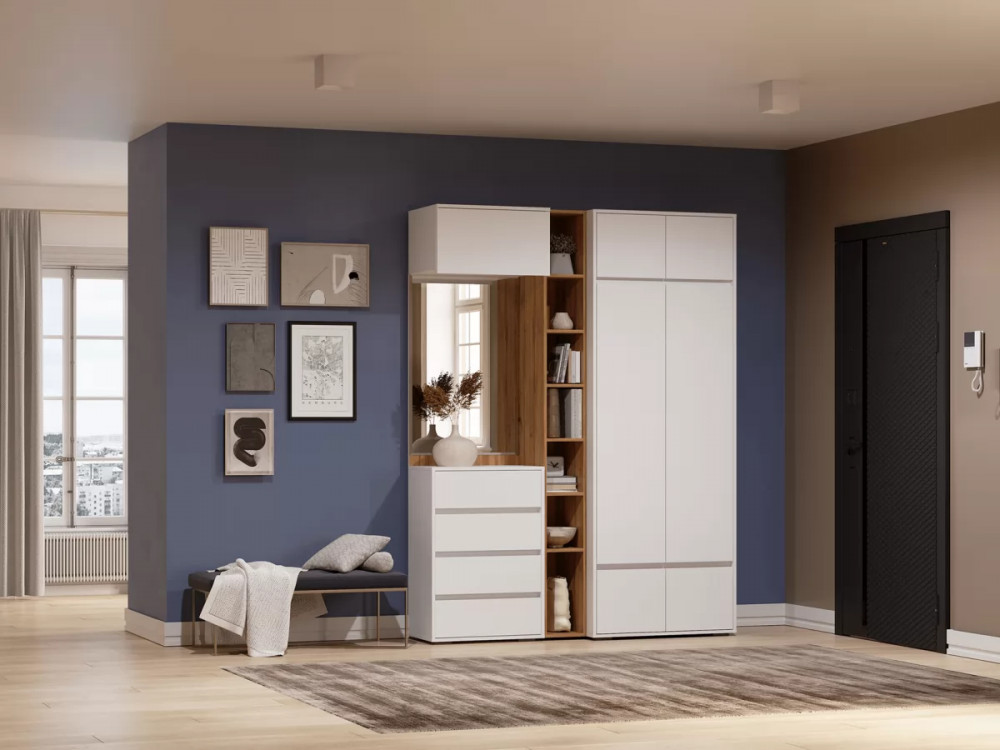 Прихожая – это обязательная составляющая любой квартиры или дома. Именно данное помещение создает первое впечатление о жильцах. Модульная прихожая «Прага» характеризуется в первую очередь функциональностью. Она достаточно вместительна для хранения различных вещей, обуви, одежды, сумок. Данное изделие выполнено в современном цветовом стиле, который отличается мобильностью, удобством и отличным функционалом. Вы можете собрать модульную прихожую под любое Ваше желание, если добавить антресоли общая высота прихожей составит 2,5 метра.