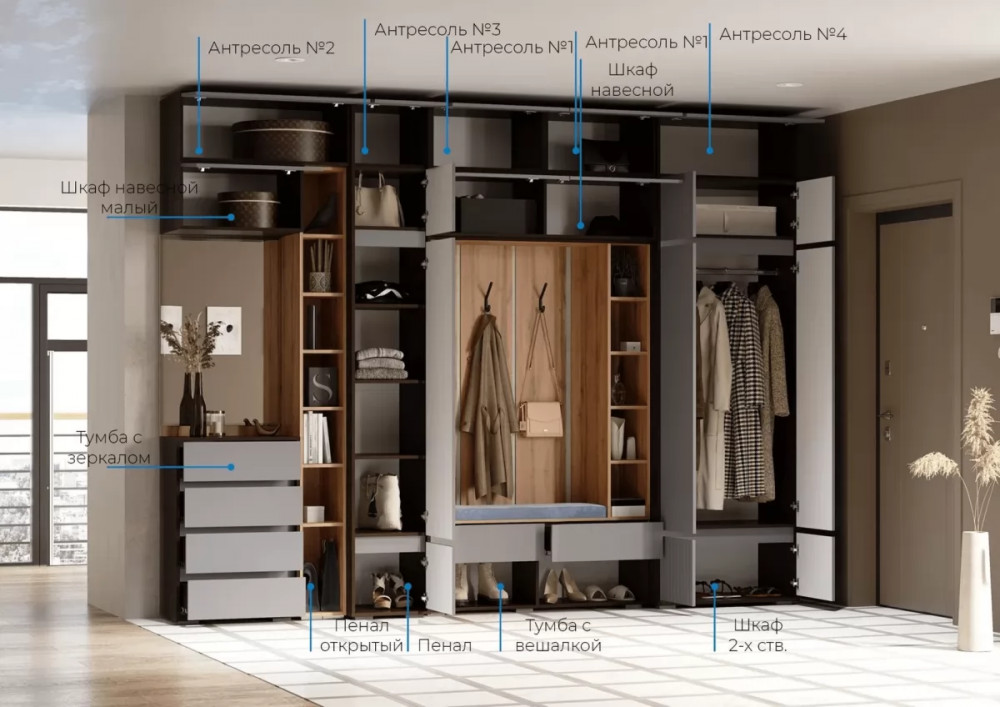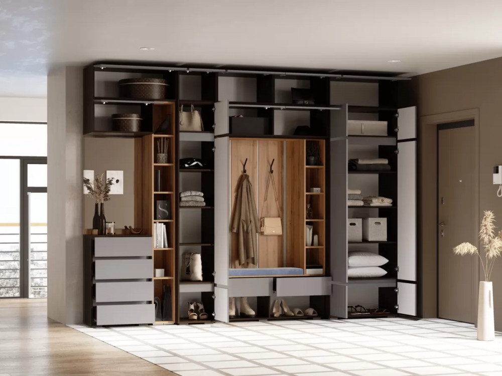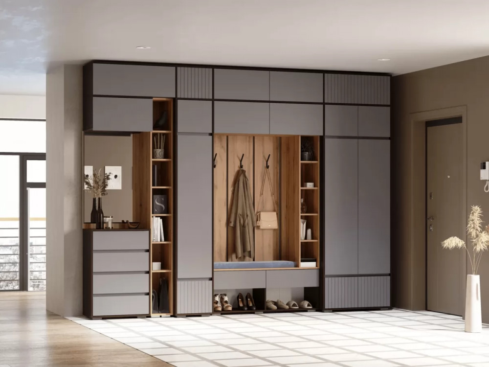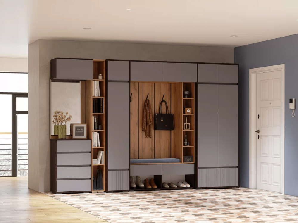 Прихожая – это обязательная составляющая любой квартиры или дома. Именно данное помещение создает первое впечатление о жильцах. Модульная прихожая «Прага» характеризуется в первую очередь функциональностью. Она достаточно вместительна для хранения различных вещей, обуви, одежды, сумок. Данное изделие выполнено в современном цветовом стиле, который отличается мобильностью, удобством и отличным функционалом. Вы можете собрать модульную прихожую под любое Ваше желание, если добавить антресоли общая высота прихожей составит 2,5 метра.