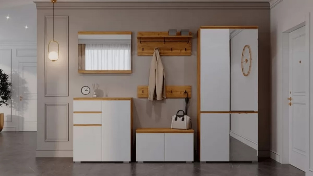 ГРЕТТА Тумба 900 с 2дв. (ш900*г411*в500мм), ЛДСП дуб крафт золотой/ЛДСП белый в Тюмени