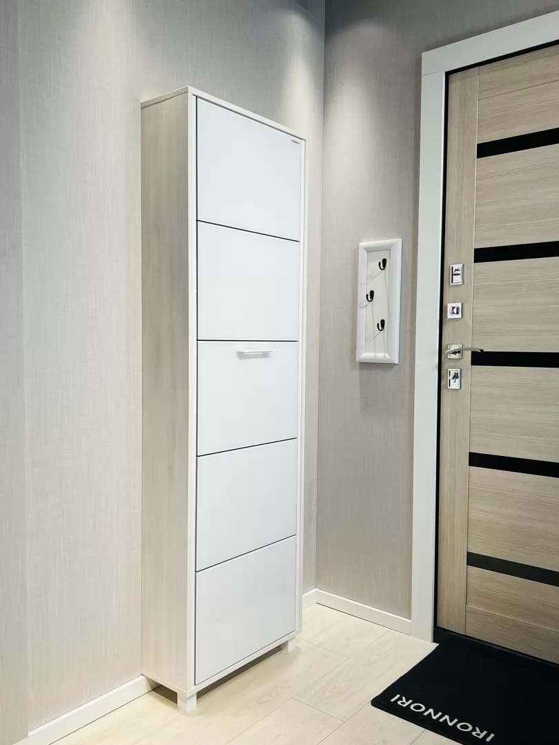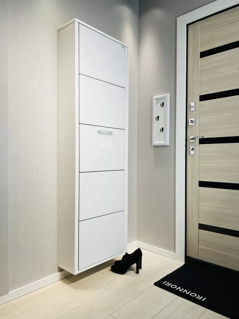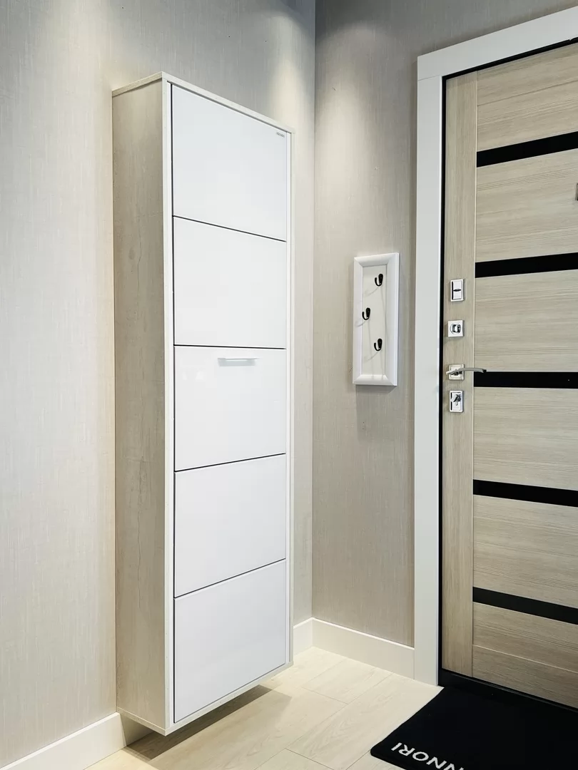 Обувница Лайт 5 секций — компактное решение для создания функционального интерьера в небольшой современной прихожей. Производимая нами фурнитура работает по принципу веера, обеспечивая синхронное открытие лотков, и позволит аккуратно хранить всю необходимую обувь.