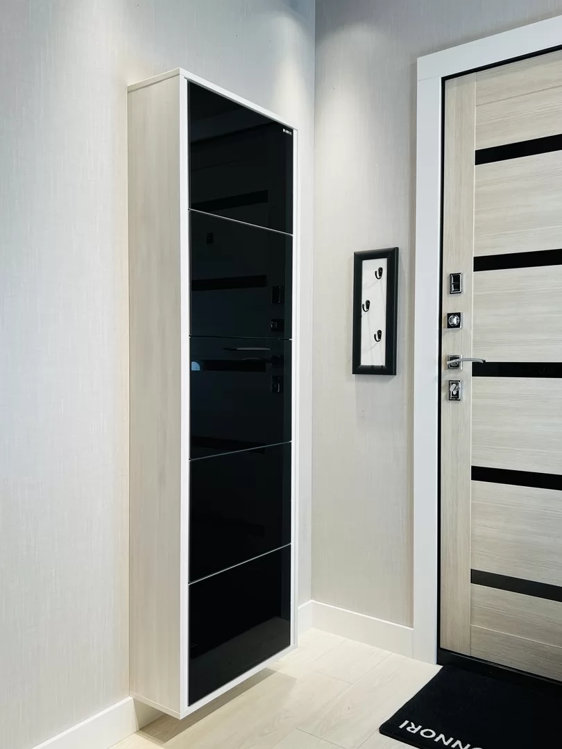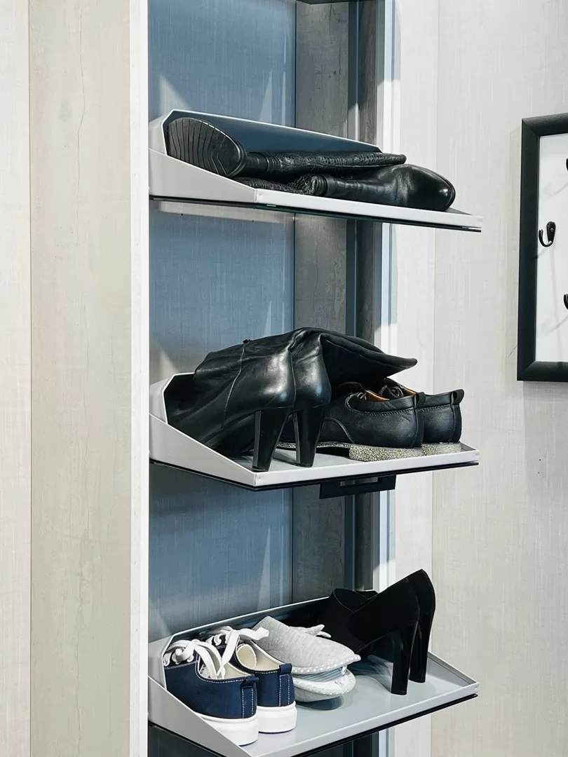 Обувница Лайт 5 секций — компактное решение для создания функционального интерьера в небольшой современной прихожей. Производимая нами фурнитура работает по принципу веера, обеспечивая синхронное открытие лотков, и позволит аккуратно хранить всю необходимую обувь.
