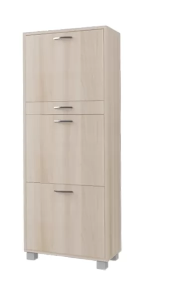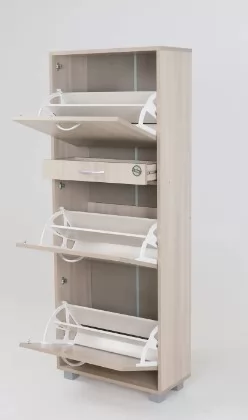 Вместительная и компактная обувница «ШО 53В» вместит в себя 18 пар обуви. В выдвижном ящике можно хранить щетки и крем для обуви.