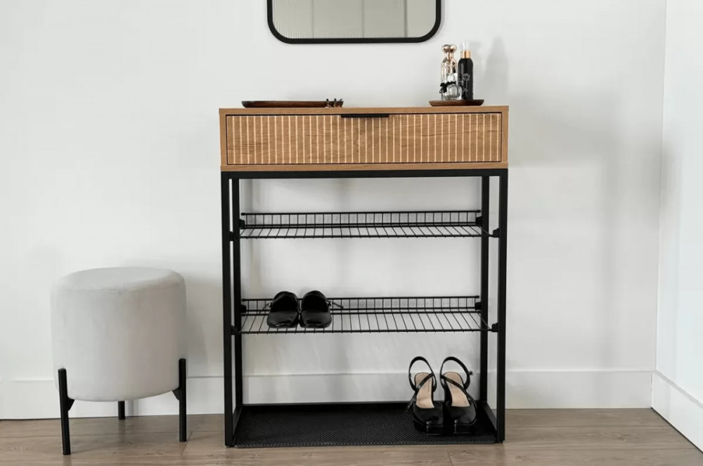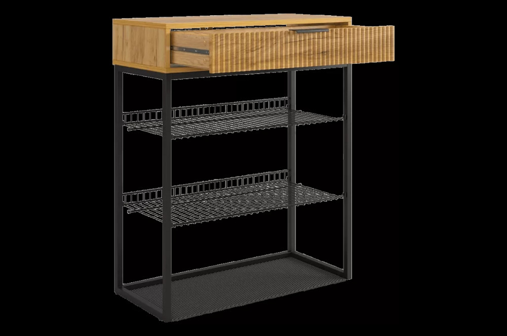 Обувница Вельвет прекрасно сочетает в себе стиль и функциональность. Её дизайн в стиле лофт идеально подходит для современных интерьеров. Выдвижной ящик с шариковыми направляющими обеспечивает бесшумное и плавное открывание, предоставляя удобный доступ к вашим аксессуарам и мелочам. Регулируемые опоры и специальный коврик обеспечивают дополнительный комфорт и защиту.