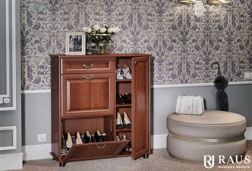 Обувница ЯН 59 RAUS – это часть модульной программы Янна, может использоваться как в ее составе, так и в качестве отдельного, самостоятельного предмета меблировки для обустройства прихожей или другой комнаты. Имеет вместительные отделения для обуви: ящик с распашной дверцей, оптимальный для сапог, а также два ящика со стойками для обуви и один выдвижной ящик для различных мелочей, например, средств по уходу за обувью.