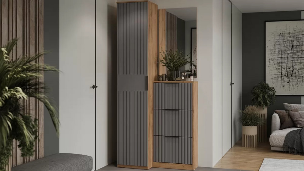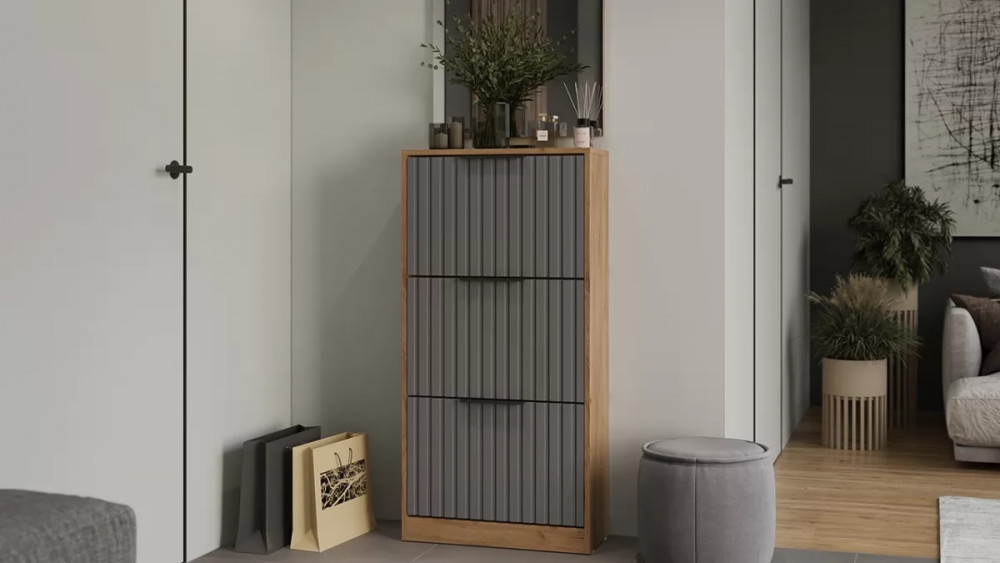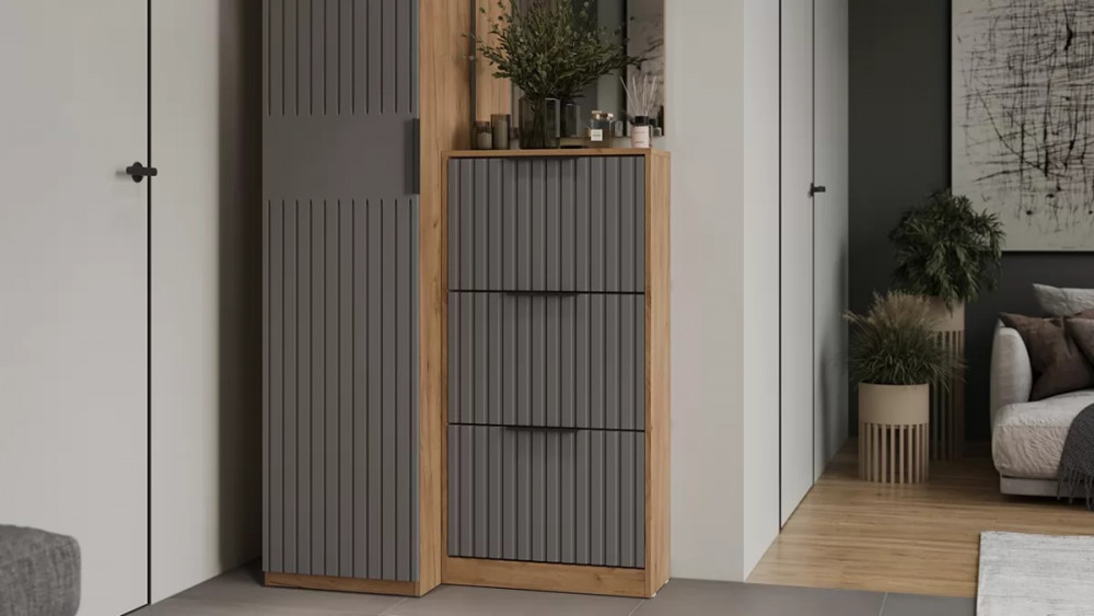 Тумба для обуви «Хилтон» Дуб Крафт золотой, Графит матовый в Тюмени