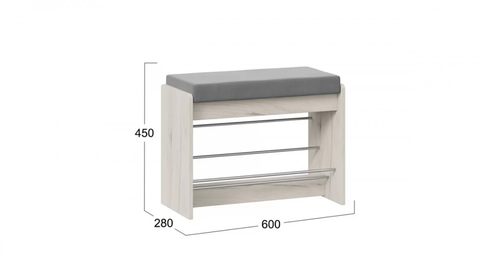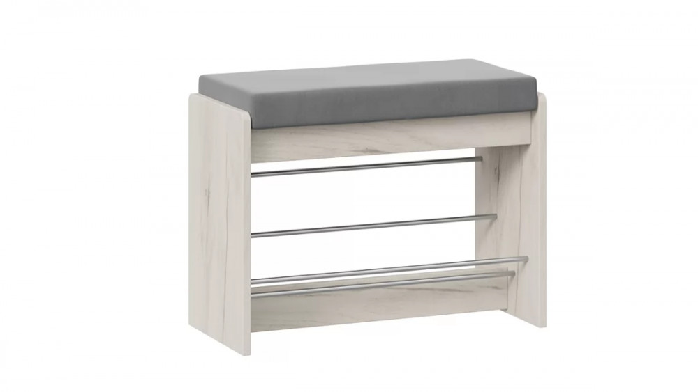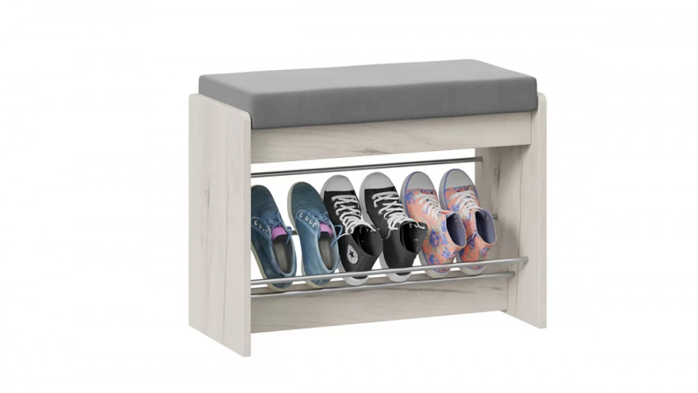 Тумба для обуви «Тайм» тип 1 Дуб крафт белый/Велюр серый в Тюмени