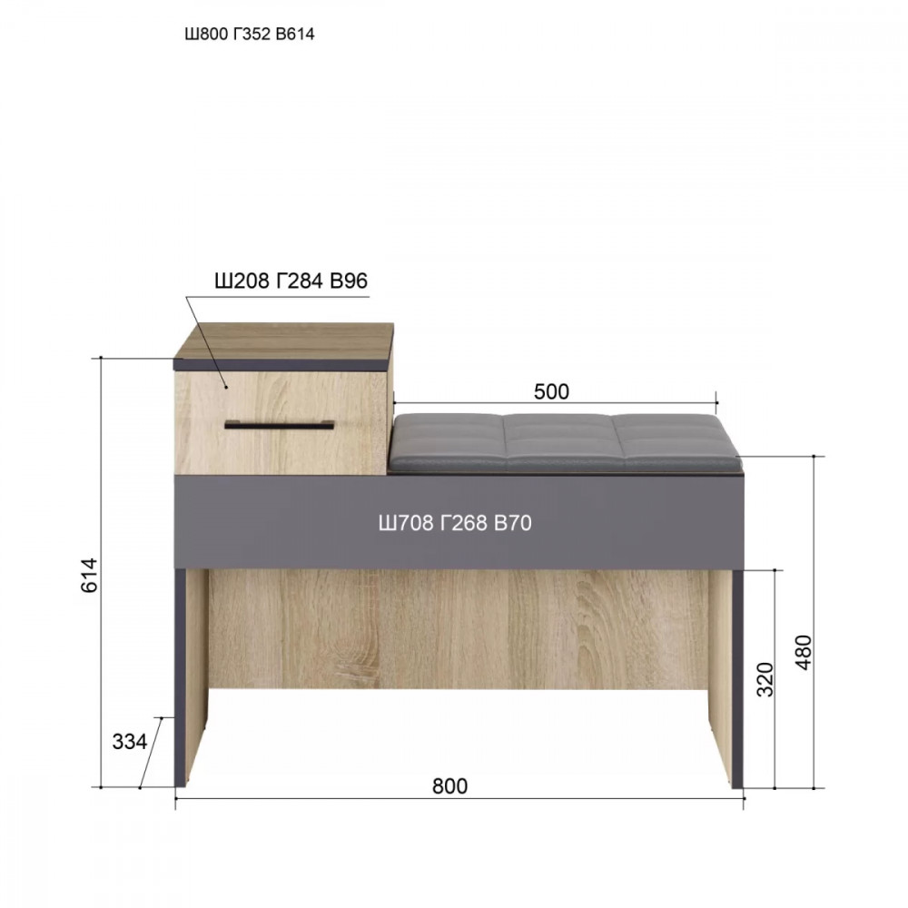 Размер: (Ш*В*Г) 800*614*352 мм.