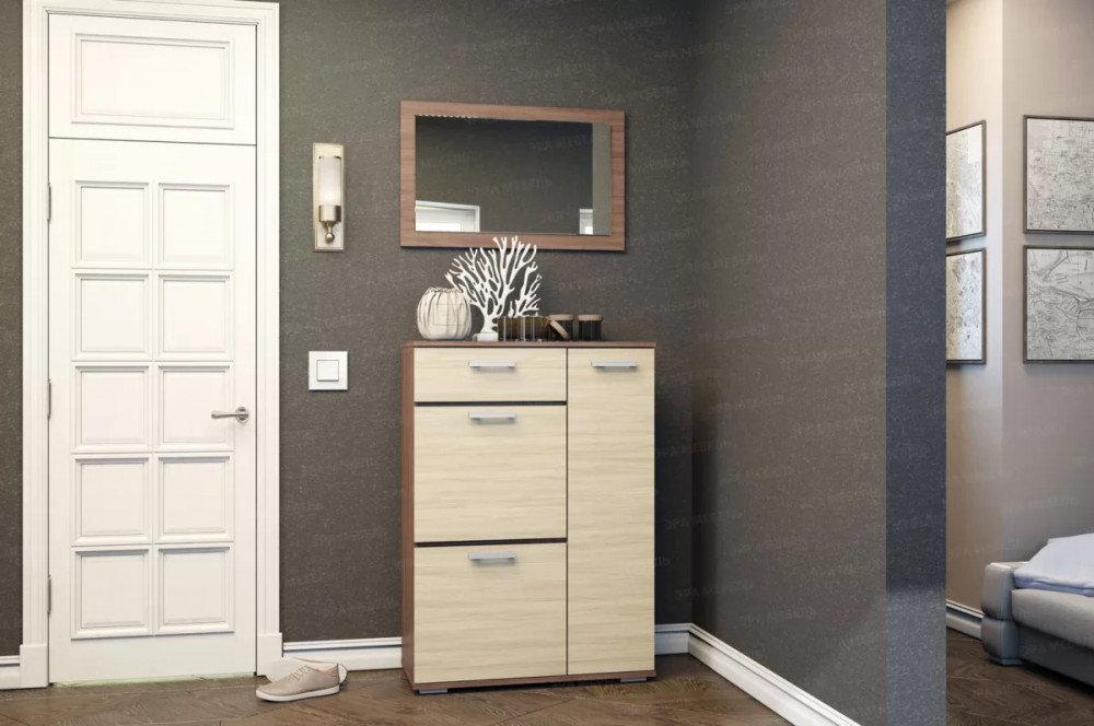 Современная и практичная тумба для хранения одежды, обуви и аксессуаров представлена в двух цветовых решениях: ясень Шимо тёмный + ясень Шимо светлый/ Венге + сосна Лоредо.