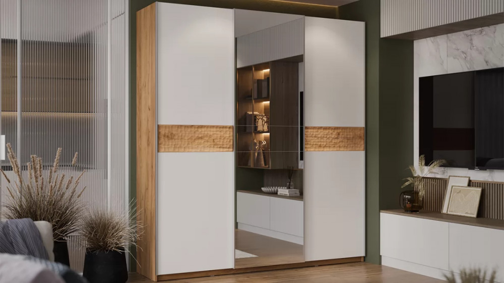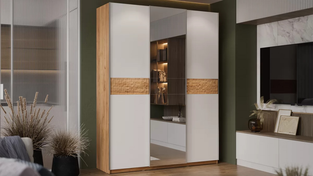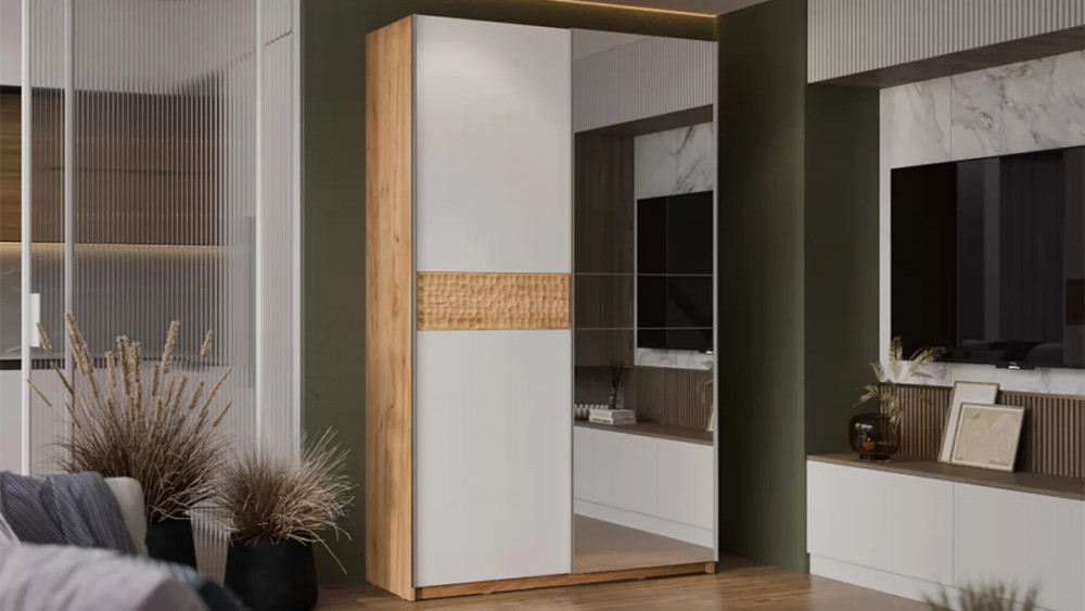 Серия шкафов-купе «Оскар Скания» Ручка серебро, Дуб Крафт золотой, Белый снег, Дуб тортугга G46271 в Тюмени