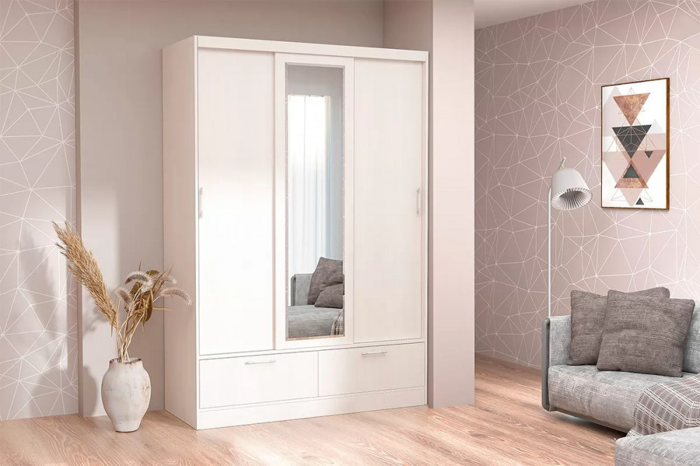 Шкаф-купе 009, трехдверный, с ящиками, бодега белая Диал в Тюмени