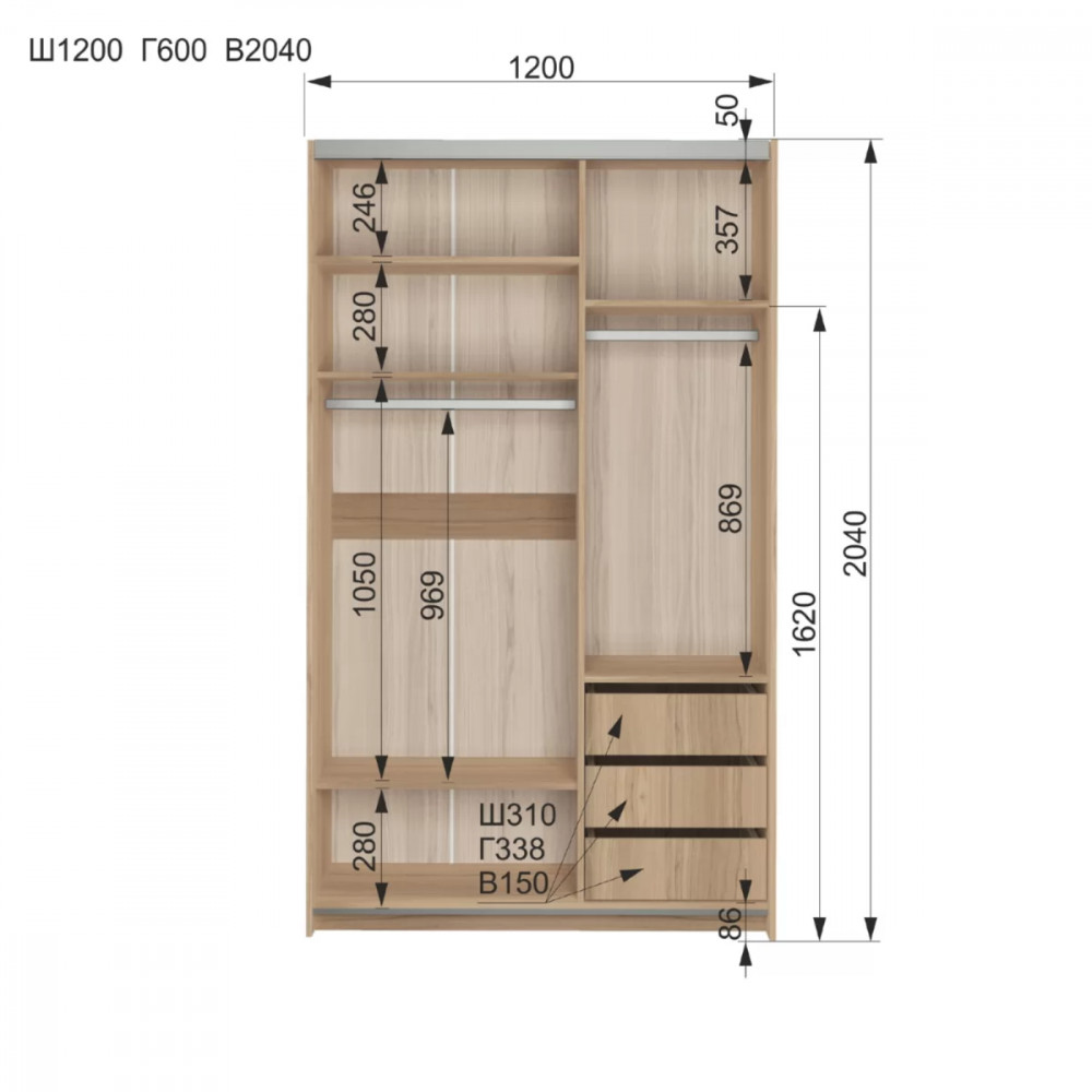 | Размер (Ш*В*Г) | 1200*2040*600 |