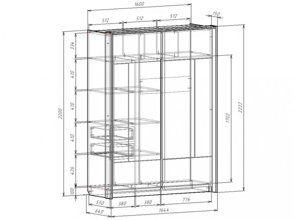 Размер(ШхГхВ): 1644х640х2222 мм