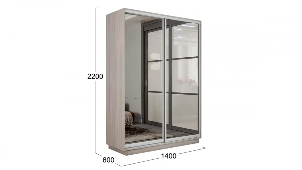 Шкаф-купе 2-х дверный «Румер-2» Ясень шимо светлый, Зеркало G46420 в Тюмени