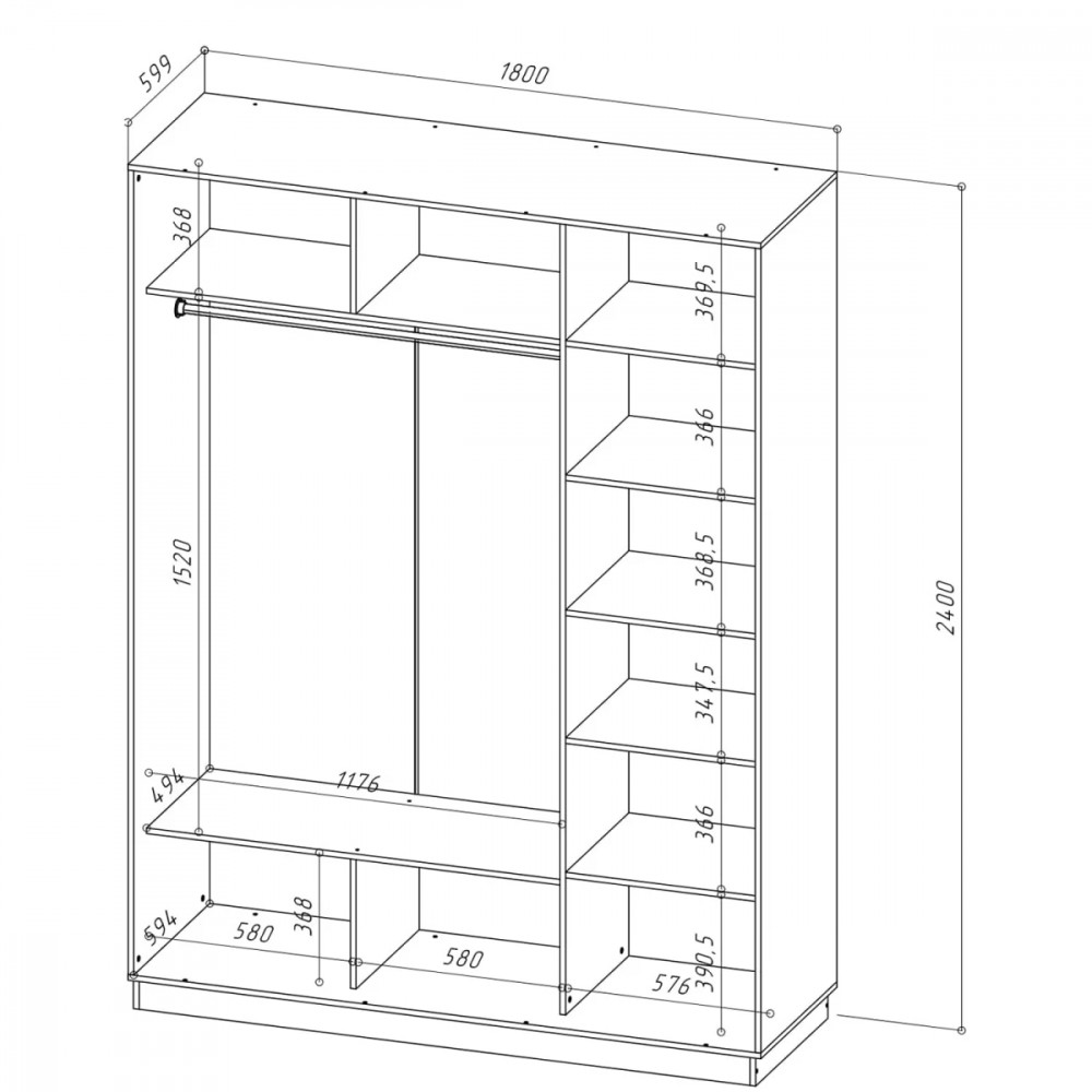 | Размеры (ШхВхГ) | 1800х2400х600 мм |