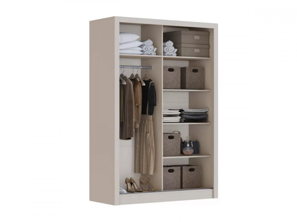 Современный дизайн выполнен в минималистичном стиле, который идеально впишется в любой интерьер. Раздвижные двери обеспечивают легкий доступ к содержимому шкафа, экономя пространство в комнате. Внутреннее пространство шкафа продумано до мелочей, чтобы вы могли удобно разместить все свои вещи. Большой выбор цветовых решений, 2 размера и 3 варианта внутреннего наполнения шкафа под ваши потребности.