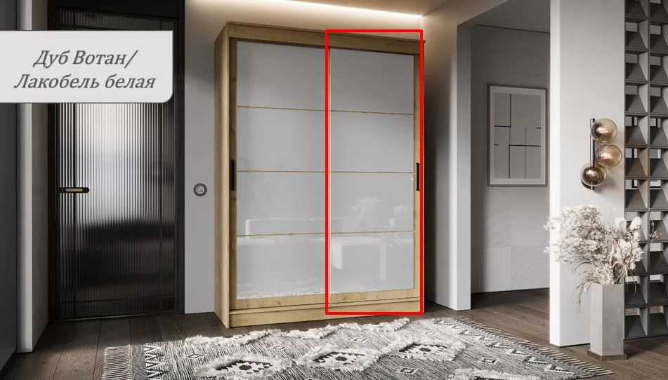 Шкаф-купе ГРАНД 1 1,6 Фасад Лакобель ЛДСП Дуб вотан/Лакобель Белая в Тюмени