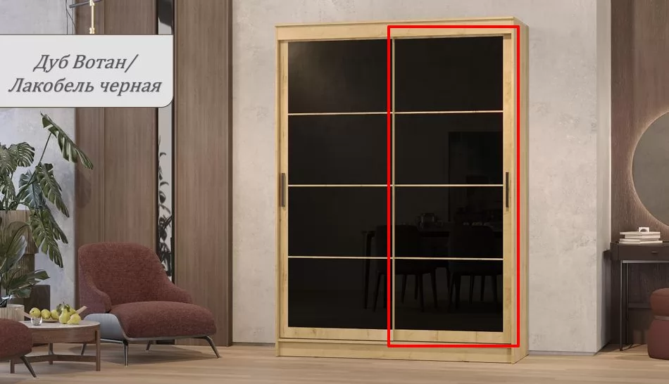 Шкаф-купе ГРАНД 1 1,6 Фасад Лакобель ЛДСП Дуб вотан/Лакобель Чёрный в Тюмени