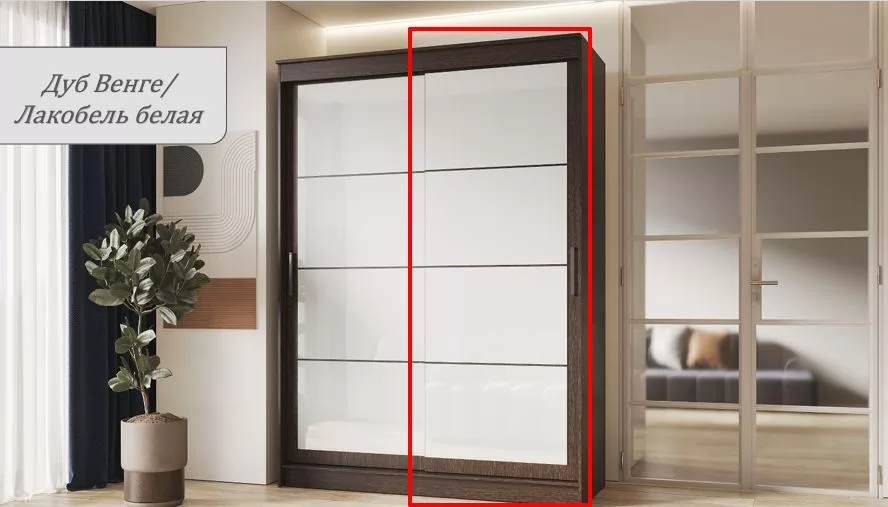 Шкаф-купе ГРАНД 1 1,6 Фасад Лакобель ЛДСП Венге/Лакобель Белая в Тюмени