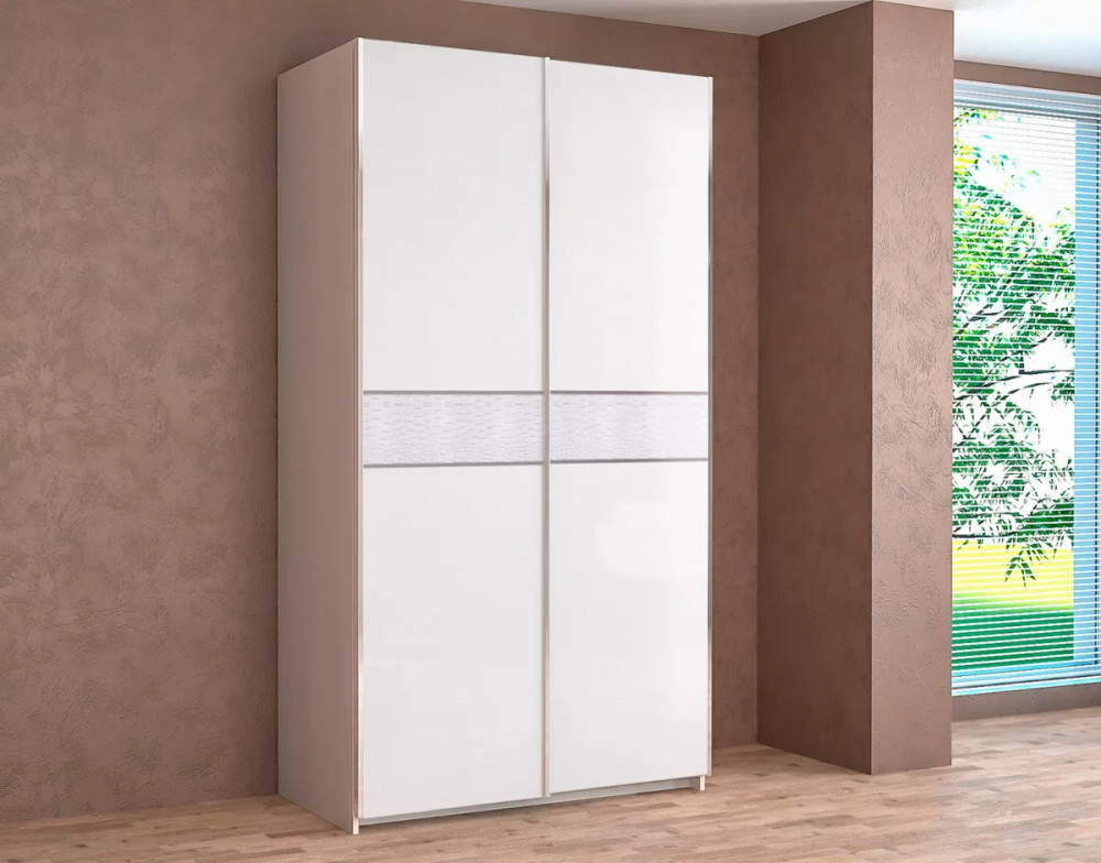 Шкаф-купе Иннэс-5 двухдверный 1400 мм Бодега белая/Белый глянец в Тюмени